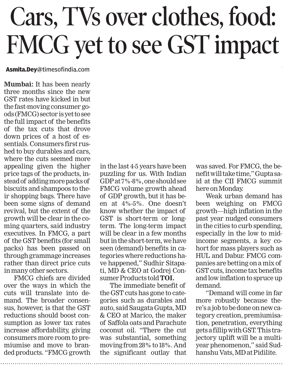 The demand for FMCG goods is expected to receive a boost with GST 2.0