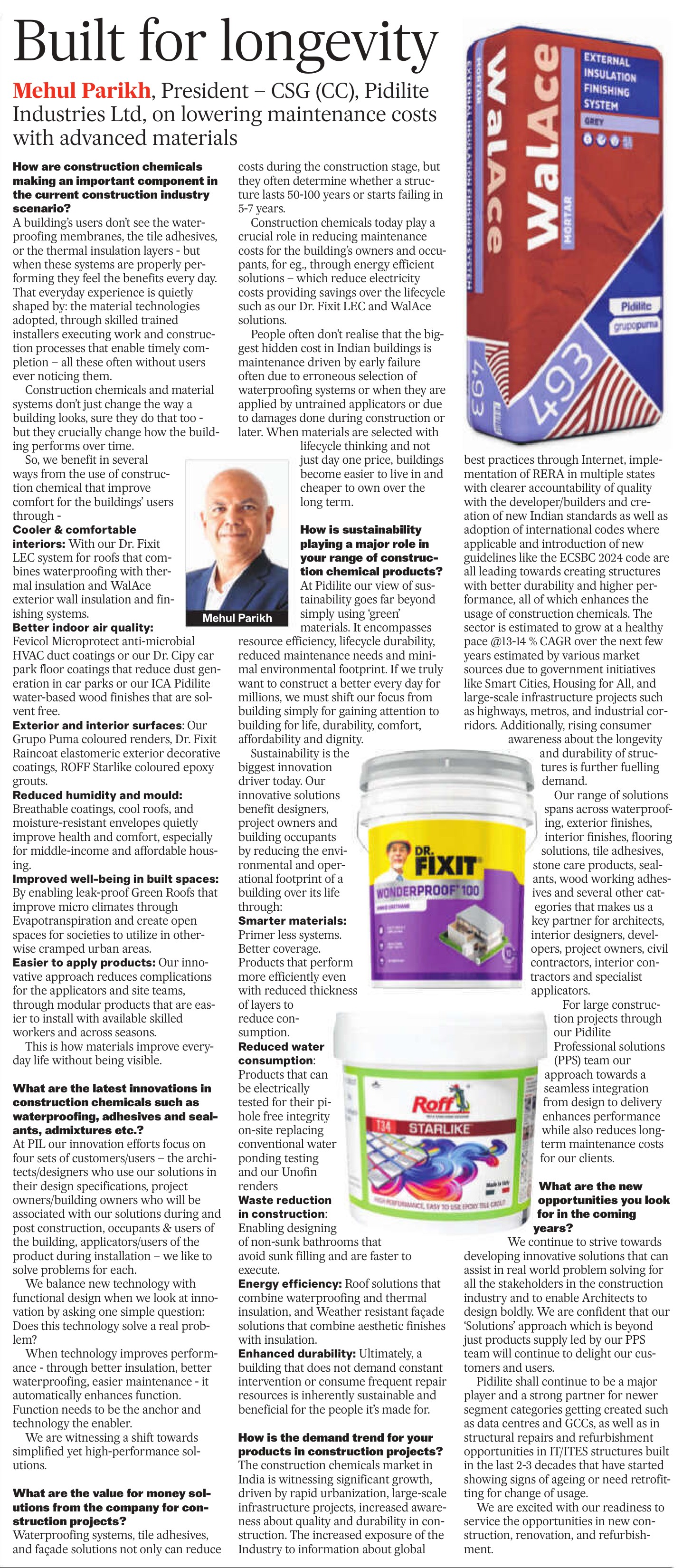 Sandeep Tanwani, Chief Marketing Officer, Pidilite Industries Ltd., said, “Over the last 25 years Dr. Fixit’s expert waterproofing solutions have ensured that consumers’ most significant investment—their home—is protected against leakage and damage.